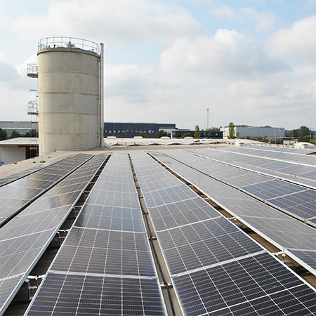 Unser Betrieb benötigt ca. 125 Kilowatt (KW) in der Stunde. Durch den Bau einer 150 KW Photovoltaikanlage auf unserem Hallendach produzieren wir bei Sonnenschein unseren Strom daher selbst.
